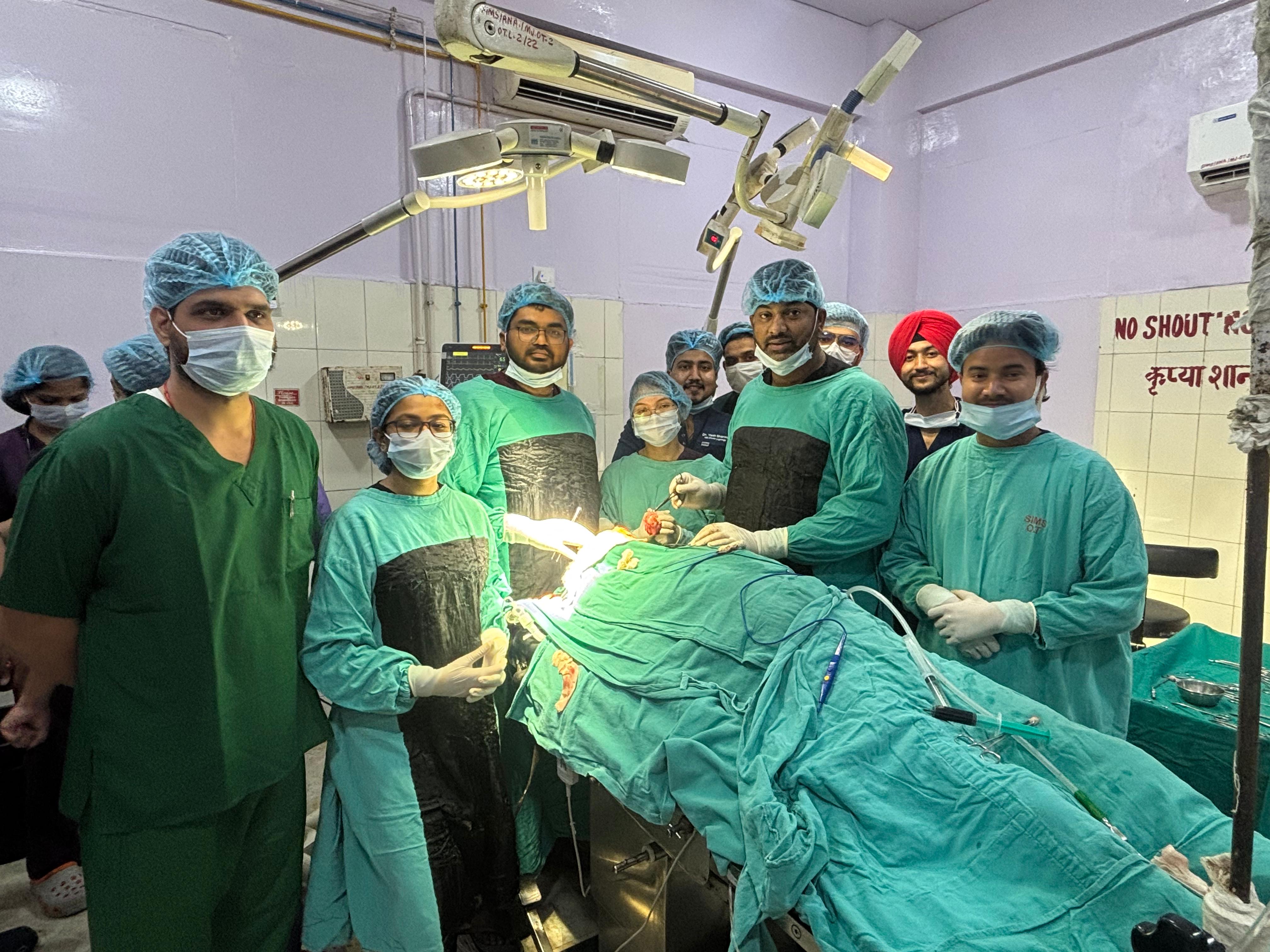 यह जटिल एवं उच्च स्तरीय शल्य चिकित्सा विभागाध्यक्ष डॉ. अविनाश कुमार के नेतृत्व में सहायक प्रोफेसर डॉ. शुभम मित्तल, डॉ. श्रेया एवं डॉ. थजाना की अनुभवी टीम द्वारा अत्यंत सावधानी और विशेषज्ञता के साथ की गई। ऑपरेशन के दौरान आधुनिक तकनीकों और उन्नत चिकित्सा उपकरणों का उपयोग किया गया, जिससे सर्जरी सुरक्षित एवं प्रभावी रही।