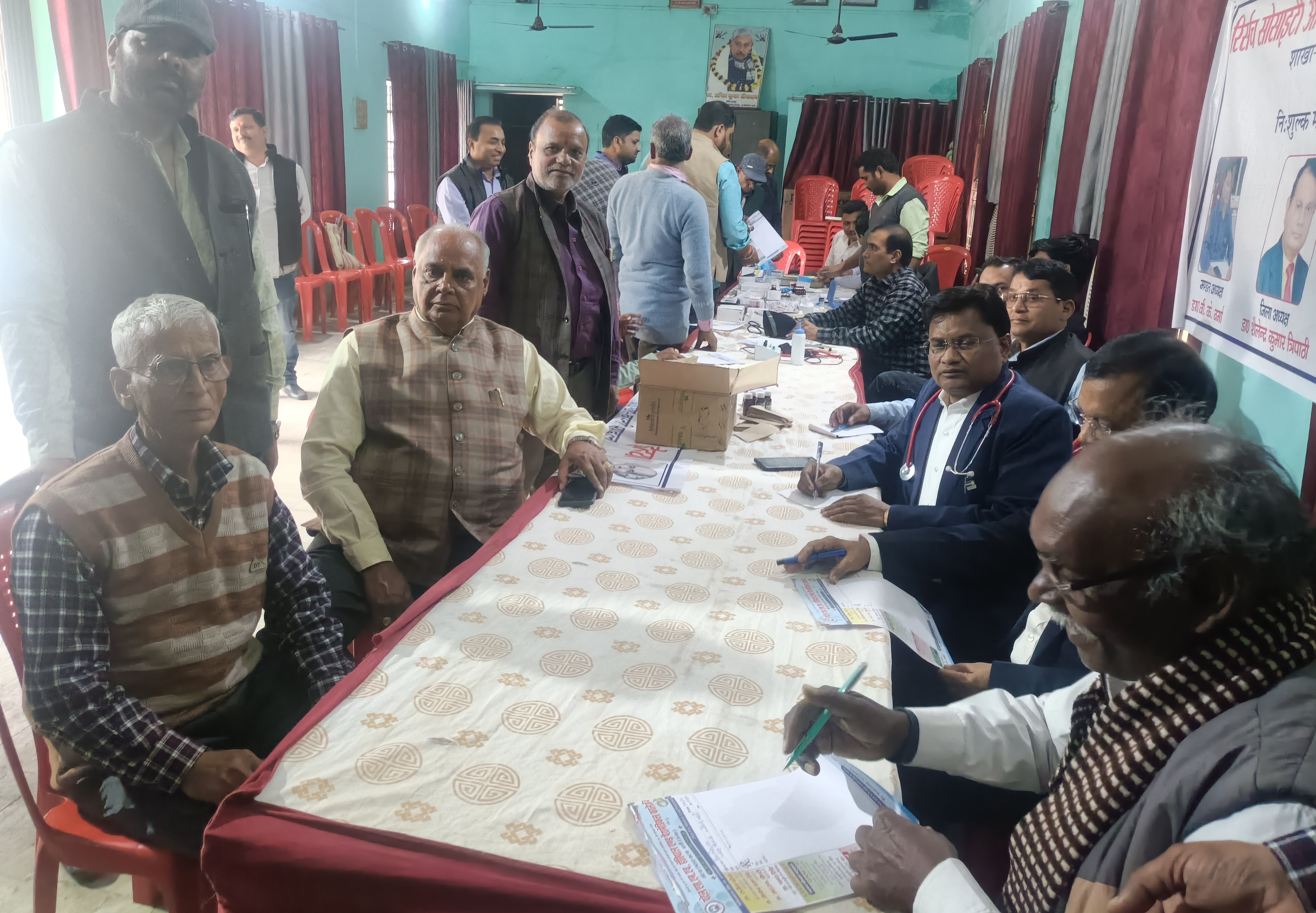 चिकित्सा शिविर में पटेल एस.एम.एच. हास्पिटल के प्रबंधक एवं जिला चिकित्सालय के आयुष चिकित्साधिकारी डा. वी.के. वर्मा, डा. राजेश चौधरी, डा. एस.के. त्रिपाठी, डा. अतुल श्रीवास्तव, डा. कमल वर्मा, डा. एच.आर.वर्मा, डा. नरेन्द्र चौधरी, डा. राजेश पटेल के साथ ही स्वास्थ्य कर्मी जिला अस्पताल की अंजू सिंह, कीर्ति आनन्द, इमरान, संजय, अभिषेक के साथ ही पटेल एस.एम.एच. हास्पिटल गोटवा के मनीष चौधरी, विकास चौधरी, मनीष राना, आदर्श गुप्ता, शंकर यादव, जग प्रसाद, चित्रसेन पाण्डेय आदि ने योगदान दिया। निःशुल्क चिकित्सा शिविर को सम्पन्न कराने में प्रकाश चन्द्र गुप्ता, वशिष्ठ पाण्डेय, राघवेन्द्र प्रसाद मिश्र, राजेश पाण्डेय, विपिन बिहारी त्रिपाठी, संजय विश्वकर्मा, सर्वेश श्रीवास्तव, राजेन्द्र उपाध्याय पदाधिकारियों के साथ ही जयन्त मिश्र, पुनीत ओझा, अमर सोनी, अनिल पाण्डेय, ऋतिक कुमार, आनन्द गौतम, राकेश त्रिपाठी आदि ने योगदान दिया।